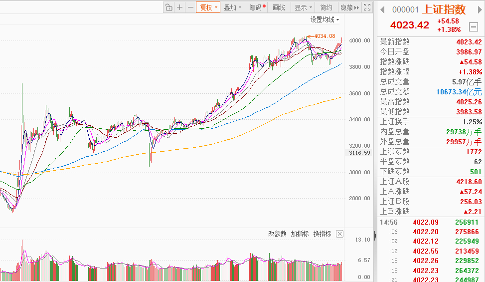大盘分析及后市展望:上证指数高开高走,一举收复4000点整数关口,创下日线“十二连阳”的罕见强势表现。市场呈现放量大涨态势,成交额突破2.5万亿。盘面上权重股搭台、个股普涨,热点板块全面开花,投资者情绪显著回暖。商业航天板块延续节前强势,消息面上,蓝箭航天科创板IPO获受理,正式冲刺“商业火箭第一股”。半导体板块大幅拉升,消息面上,周五美股多只存储芯片创新高,韩国三星电子大涨7%。权重股方面,保险、地产、证券拉升,助沪指冲破4000点整数关口。与此同时,亚太市场全线发力,MSCI新兴市场指数同步上扬,全球风险资产热度回升。