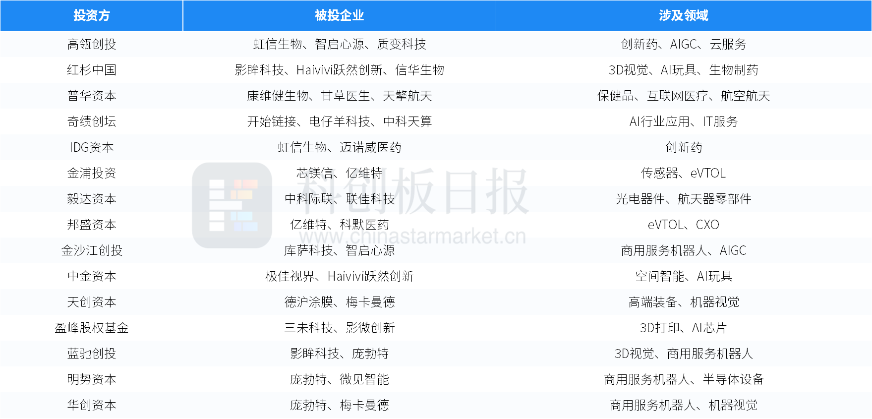 本周部分活跃投资方列举如下: