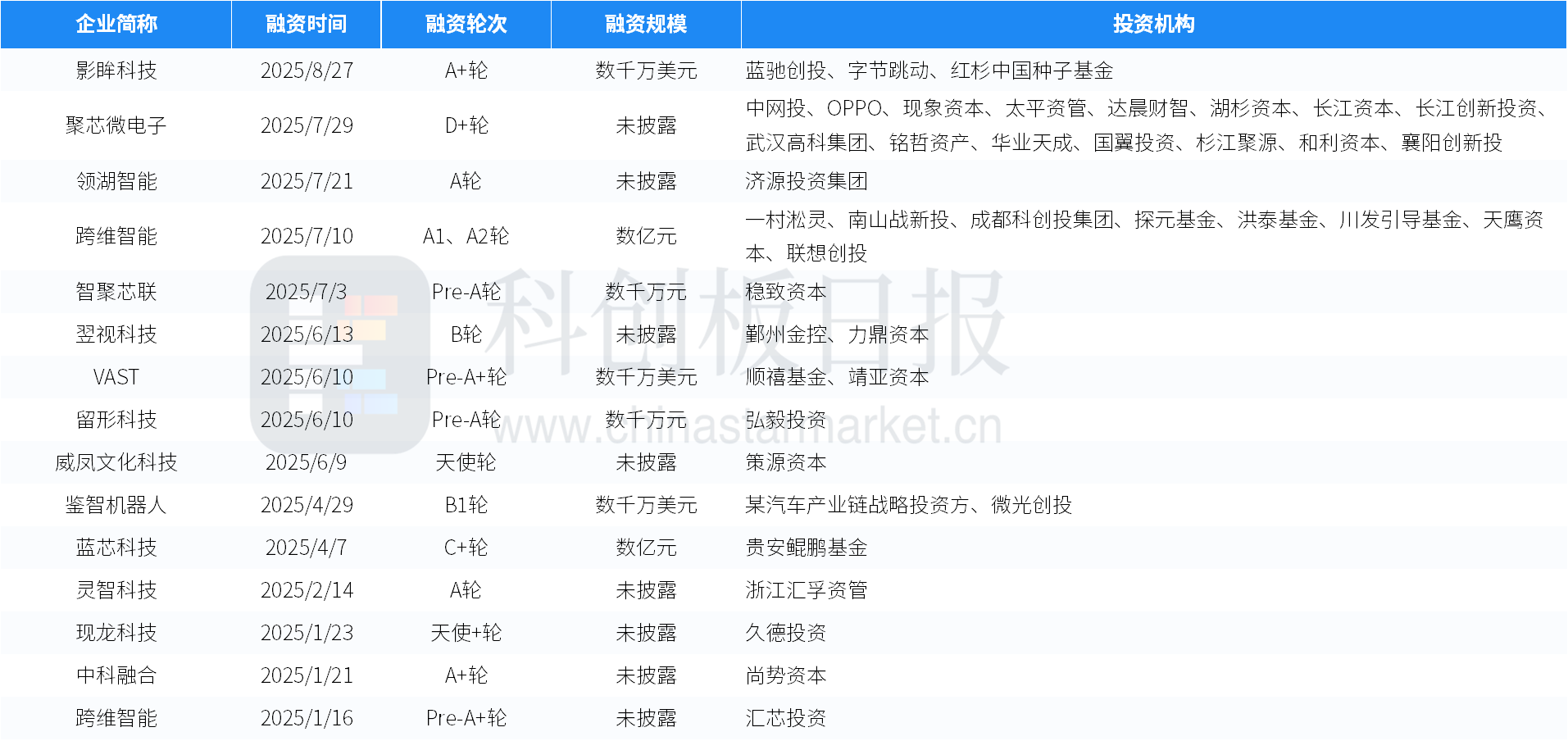 创投通:财联社及科创板日报旗下一级市场服务平台,于2022年4月挂牌上海数据交易所。通过星矿数据、一级市场投融资数据、企业创新评测实验室、创新公司数据库、未上市公司自选股、拟上市公司早知道和行业投研等,为创新公司和创投机构提供从数据产品到解决方案的一站式服务体系。