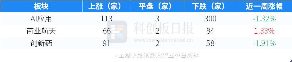 作为对比,本周AI应用、商业航天、创新药二级市场表现如下表所示。