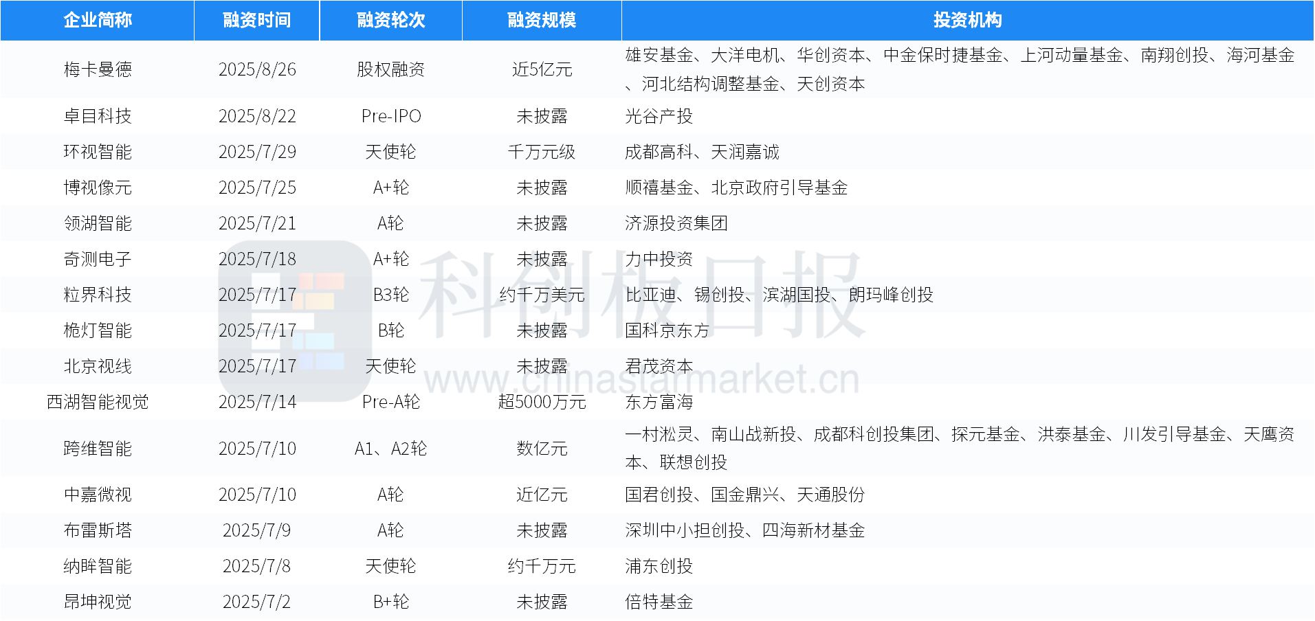 创投通数据显示,近一年来,国内机器视觉领域部分获投案例如下。