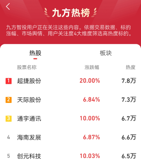 九方智投:超捷股份天际股份通宇通讯海南发展创元科技