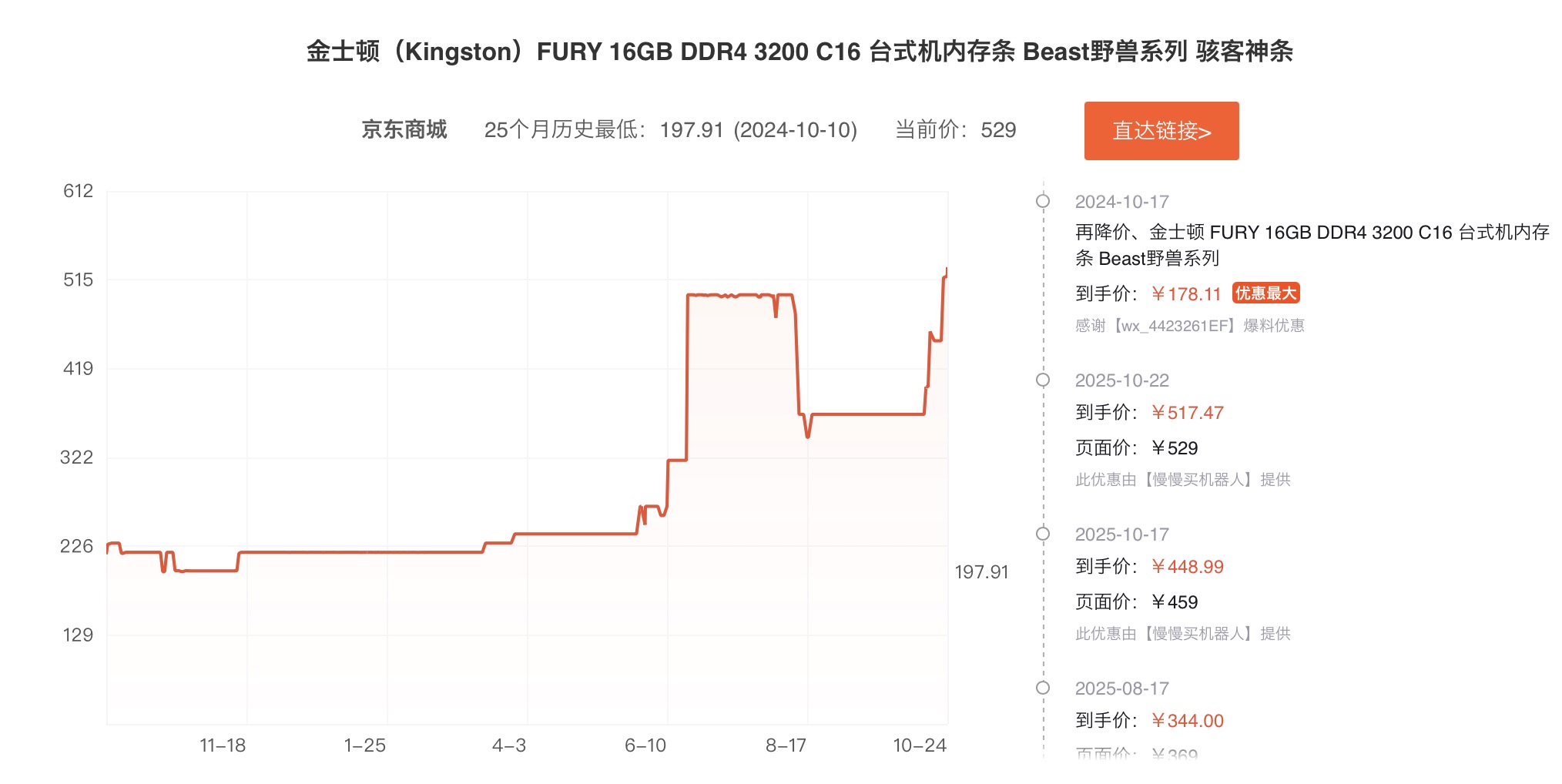 多位模组厂人士向记者表示,从今年一季度开始,DDR4的原厂价格持续走高。根据慢慢买App,一款金士顿(Kingston)的DDR4台式机内存条,价格从今年3月开始急速上涨,目前售价已超去年同期两倍。 手机等终端市场也对存储涨价产生反馈。23日发售的Redmi K90系列手机部分版本售价较上一代上调了100-400元不等,小米集团总裁卢伟冰对此公开表示,来自上游的成本压力,已真实的传导到了其新品定价上。他坦言,无法改变全球供应链的走势,存储成本上涨也远高于预期,且会持续加剧,但小米希望这份诚意能够让大家理解。