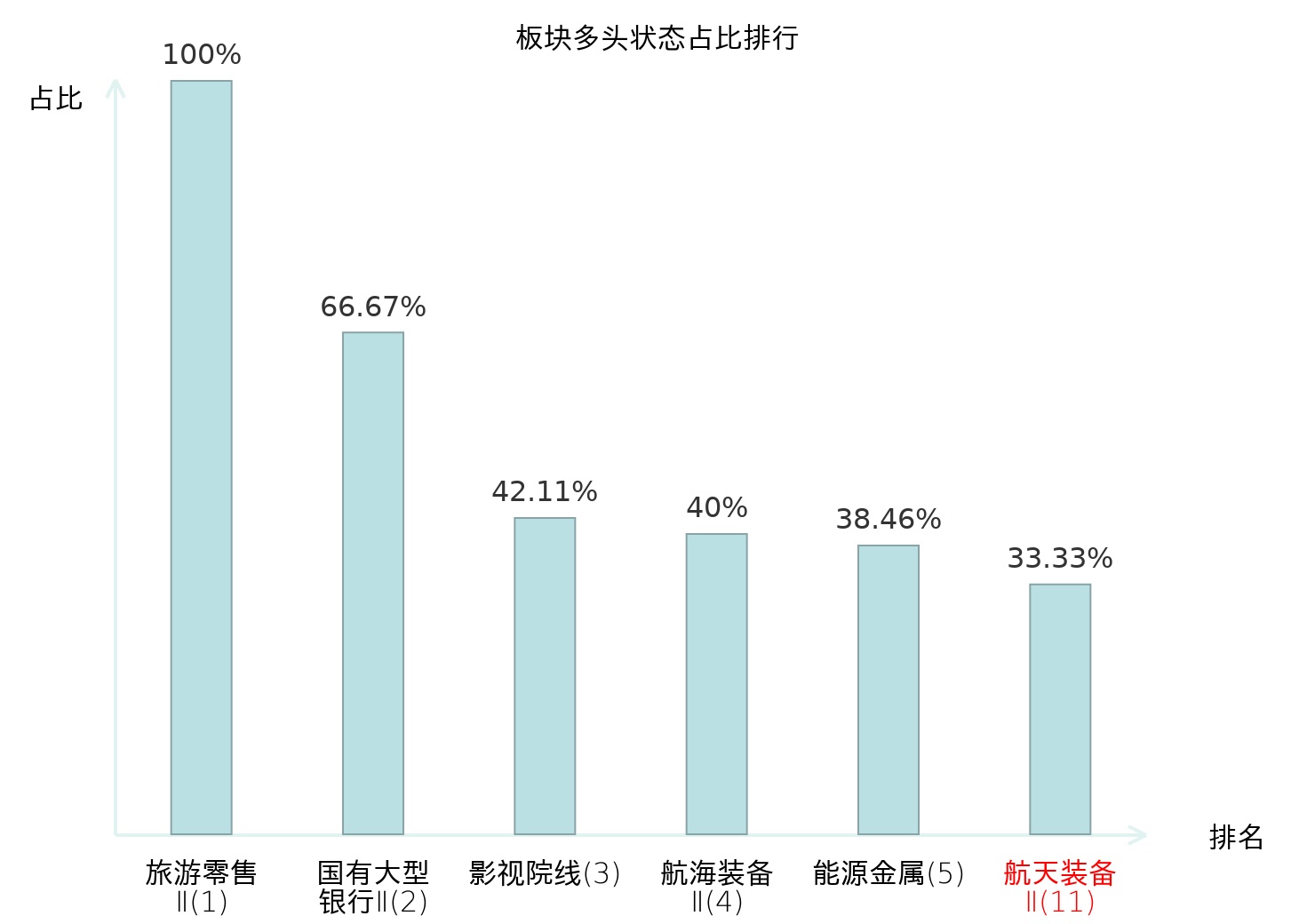 全市场所有行业板块中主力多头状态占比排名中,旅游零售Ⅱ板块位居第一。林业Ⅱ板块名次提升最快,较昨日上升102位。