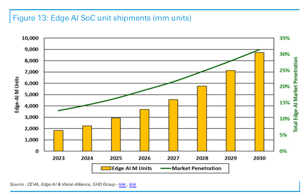 德银在研报中表示,从应用场景来看,边缘AI已在多个领域形成落地态势。汽车ADAS系统、视频安防设备、工业控制终端成为核心应用场景,Rockwell近期推出基于英伟达NemotronNano的专用小型语言模型(SLM),依托开源模型与英伟达Nemo技术,为工业环境提供边缘生成式AI能力;Ambarella透露,其涉及设备端AI处理的边缘AI业务,2025年已占公司营收的80%。消费电子、可穿戴设备、智能家居等领域则成为潜在增长极,合计占据边缘AI设备市场约70%的机会空间。