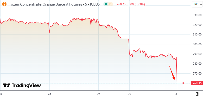 这一举措正在冲击美国农产品期货市场,导致纽约交易所橙汁价格暴跌、咖啡价格飙升。周四(7月31日)盘中,橙汁期货一度跌停,在征税名单上的咖啡期货一度涨3.5%。