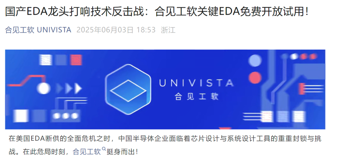 6月3日晚间,中国数字EDA/IP厂商上海合见工业软件集团有限公司(简称“合见工软”)在公众号宣布于当日正式向用户免费开放关键产品试用与评估服务。