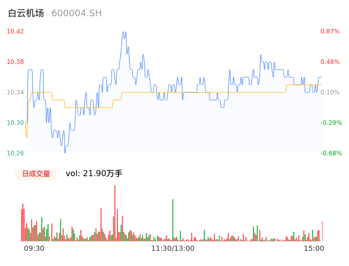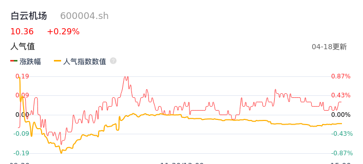 04月18日,白云机场收报10.36,股价涨幅0.29%,成交金额2.27亿元,换手率0.93%。