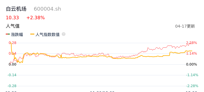 04月17日,白云机场收报10.33,股价涨幅2.38%,成交金额2.27亿元,换手率0.94%。