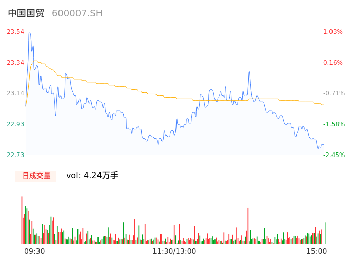 04月16日,中国国贸收报22.73,股价涨幅-2.45%,成交金额9776.50万元,换手率0.42%。