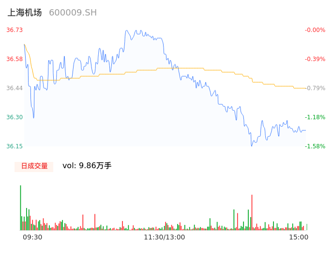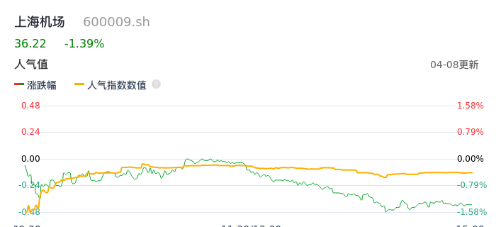 04月08日,上海机场收报36.22,股价涨幅-1.39%,成交金额3.59亿元,换手率0.51%。