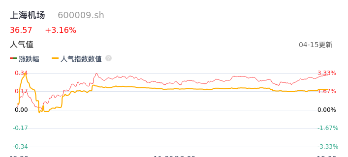04月15日,上海机场收报36.57,股价涨幅3.16%,成交金额4.64亿元,换手率0.67%。