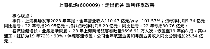 值得注意的是:2024年04月广发证券的分析师,首次发布关于上海机场的研究报告,标题为:上海机场(600009):走出低谷 盈利逐季改善。