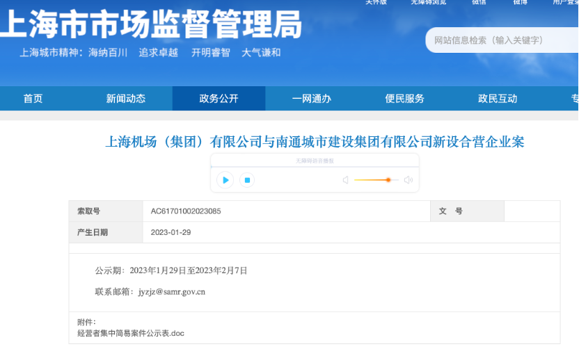 财联社8月15日讯(记者 胡皓琼)上海机场集团与南通城市建设集团的合资公司今日成立。据财联社记者了解,2023年1月,上海市市场监督管理局公布的信息曾显示,前述两家公司拟共同新设合营企业,交易完成后,上海机场集团将持有合营企业51%的股权,南通城建集团将持有合营企业49%的股权,双方将对合营企业实施共同控制。