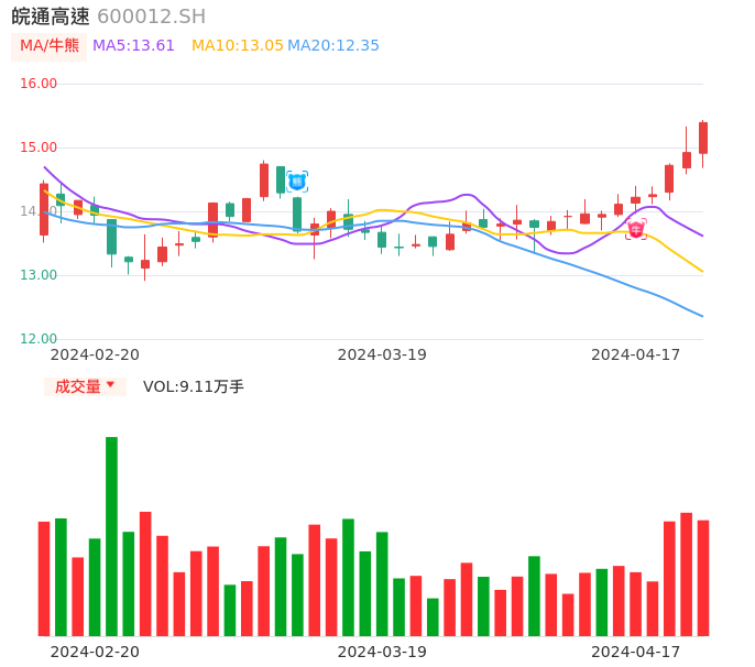 值得注意的是:2024年04月东兴证券的曹奕丰分析师,首次发布关于皖通高速的研究报告,标题为:皖通高速(600012):扣非净利符合预期 路网贯通利好后续增长。