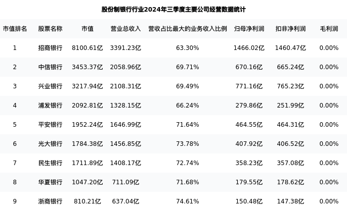 华夏银行最新报告期数据为三季度,下表汇总了股份制银行行业内市值靠前的公司三季度主要经营数据