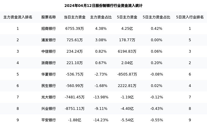 华夏银行今日净流出536.75万元,主力占比2.73%,在行业内排名:5/9;5日净流出8505.87万元,主力占比0.08%,在行业内排名:6/9。