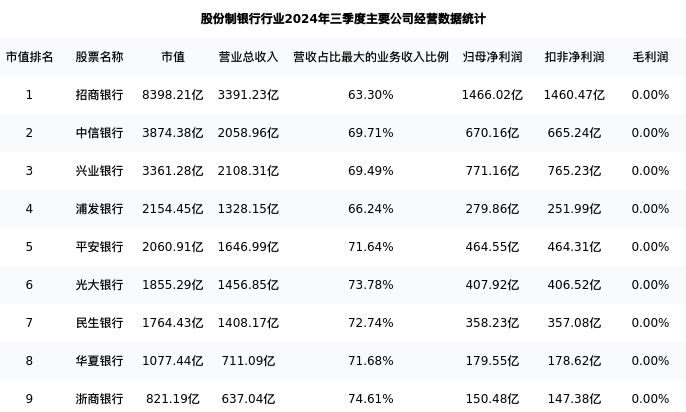 华夏银行最新报告期数据为三季度,下表汇总了股份制银行行业内市值靠前的公司三季度主要经营数据