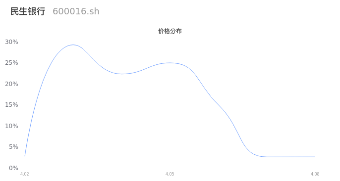 然后我们来看下当日成交的价格分布。经过分析发现,该股票当日成交价格波动低于10个最小波动价位,由于可以参考的样本量非常少,价格分布分析的结果不具有指导意义,下图仅供参考。