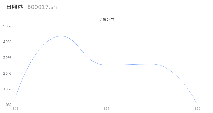 然后我们来看下当日成交的价格分布。经过分析发现,该股票当日成交价格波动低于10个最小波动价位,由于可以参考的样本量非常少,价格分布分析的结果不具有指导意义,下图仅供参考。