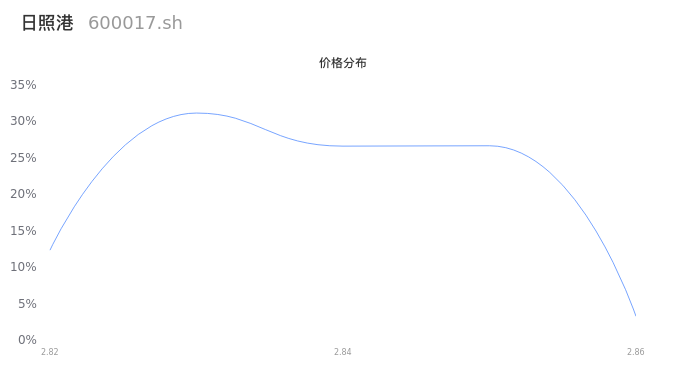 然后我们来看下当日成交的价格分布。经过分析发现,该股票当日成交价格波动低于10个最小波动价位,由于可以参考的样本量非常少,价格分布分析的结果不具有指导意义,下图仅供参考。