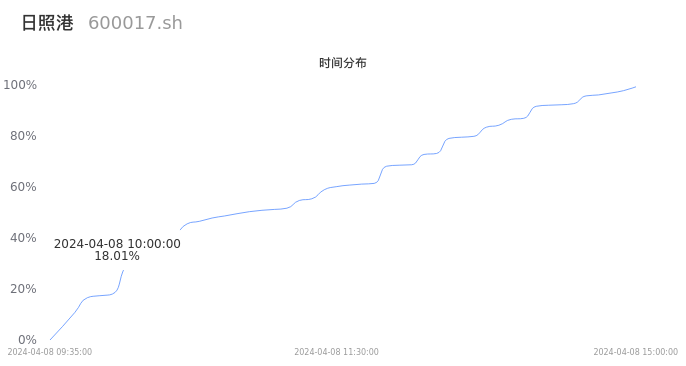 600017日照港2024年04月08日成交37.25万手,成交金额1.06亿元,相较昨日放量2.32万手,换手率1.21%,成交清淡。