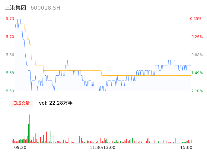 04月26日,上港集团收报5.63,股价涨幅-1.40%,成交金额1.25亿元,换手率0.10%。