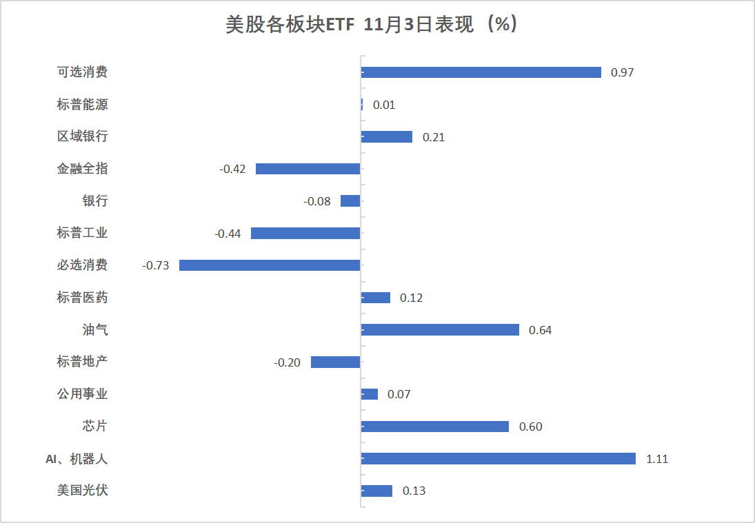 商品:WTI 12月原油期货收涨0.11%,报61.05美元/桶;布伦特1月原油期货收涨0.19%,报64.89美元/桶。COMEX 12月黄金期货收涨0.44%,报4014美元/盎司。LME期铜收跌约0.3%,报10855美元/吨。LME期铝收涨约0.6%,报2902美元/吨。
