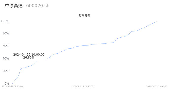 600020中原高速2024年04月23日成交13.80万手,成交金额5197.31万元,相较昨日缩量4.77万手,换手率0.61%,成交清淡。