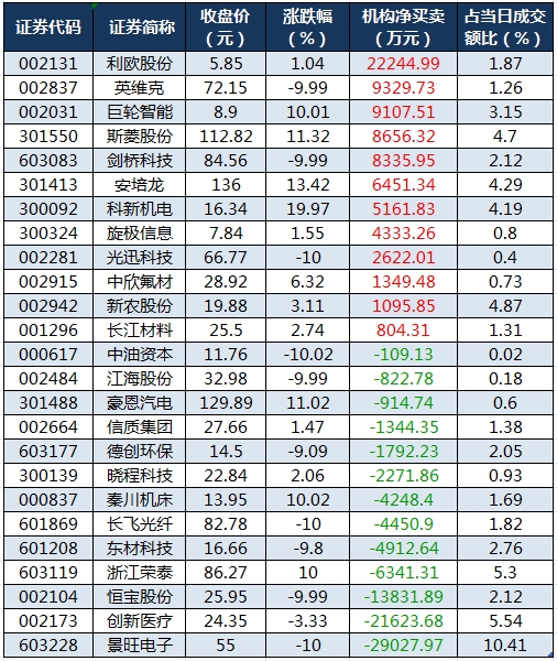 龙虎榜机构净买入12股 利欧股份居首