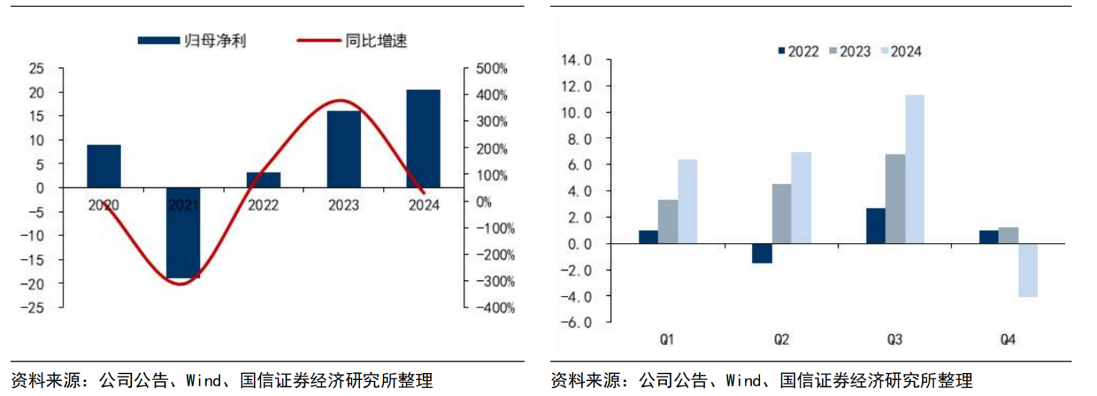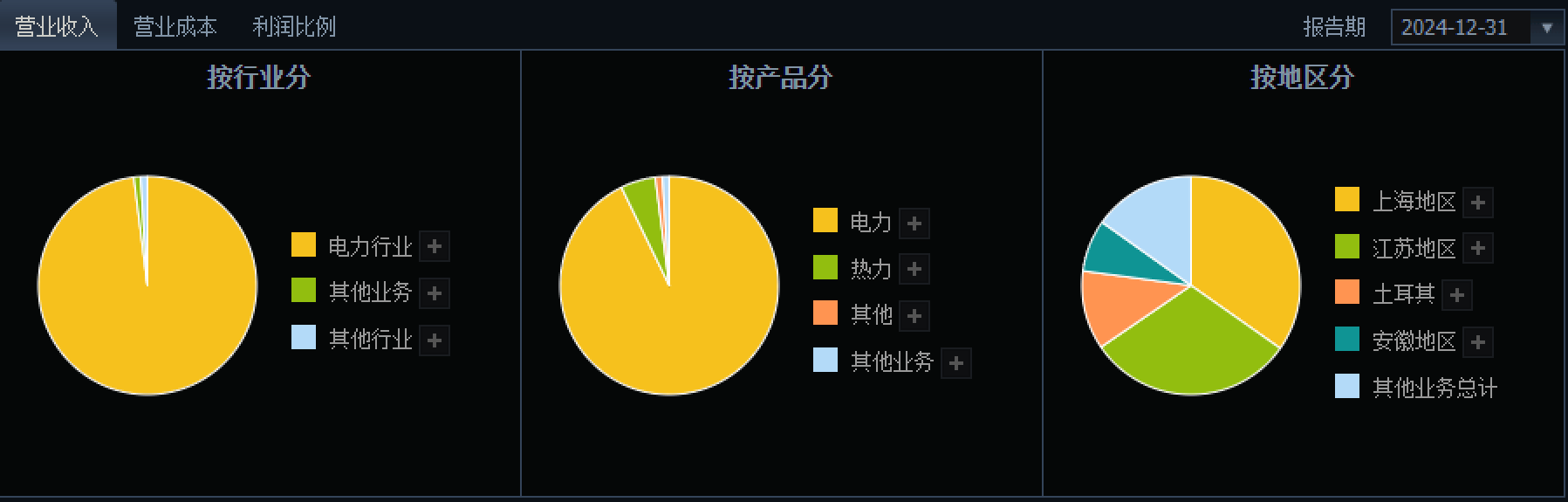 A)2024年,公司实现营业收入427.34亿元(+0.78%),归母净利润20.46亿元(+28.46%),扣非归母净利润18.95亿元(+26.57%)。公司营业收入增长主要系新增投产项目贡献收入增长所致;公司归母净利润增长主要系燃料成本下降和清洁能源发电装机规模、效益实现增长,2024年公司入厂标煤单价(含税)降至1072.41元/吨,同比下降7.32%。