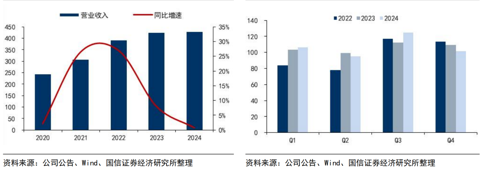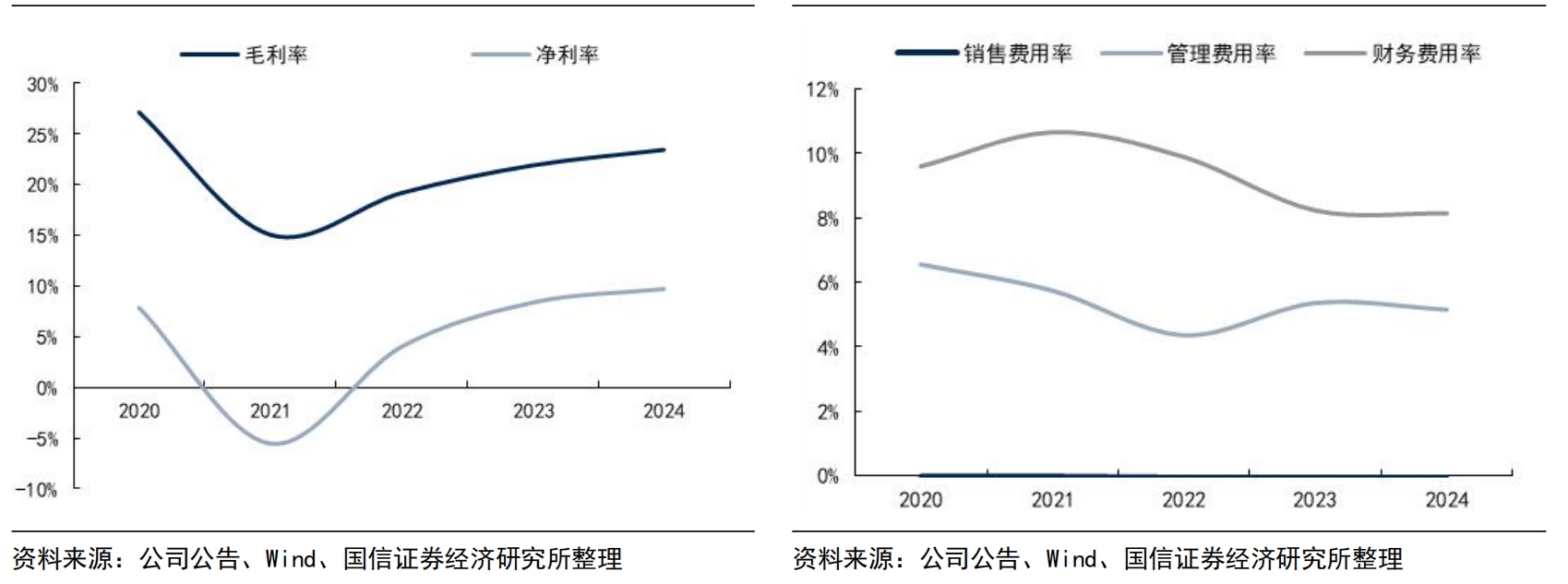 C)毛利率提升,费用率下降,净利率水平上行。2024年,公司毛利率为23.47%,同