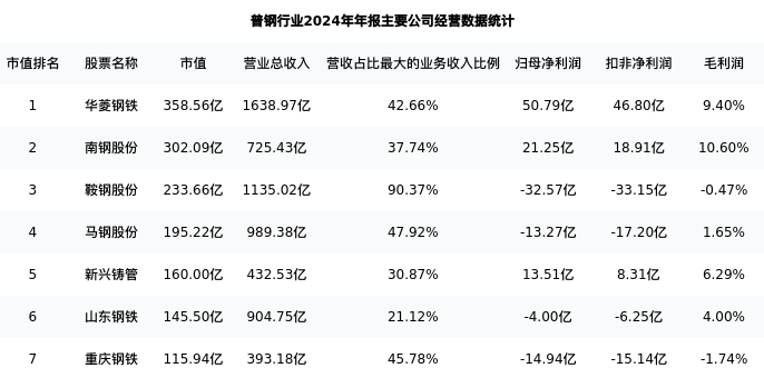 山东钢铁最新报告期数据为年报,下表汇总了普钢行业内市值靠前的公司年报主要经营数据