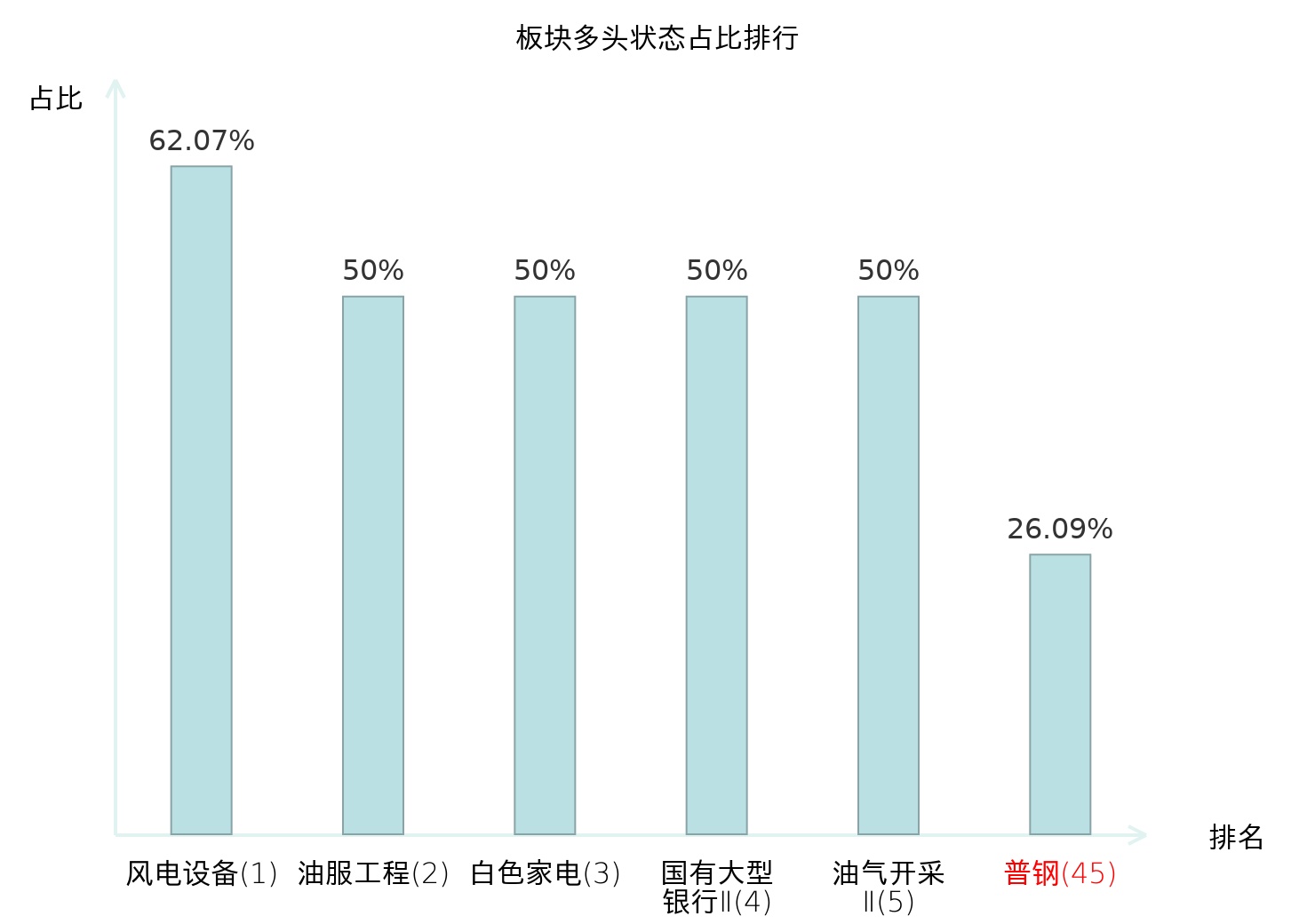 全市场所有行业板块中主力多头状态占比排名中,风电设备板块位居第一。动物保健Ⅱ板块名次提升最快,较昨日上升64位。