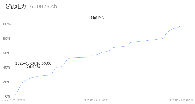 600023浙能电力2025年05月26日成交44.28万手,成交金额2.38亿,相较昨日放量3.57万手,换手率0.33%,成交清淡。