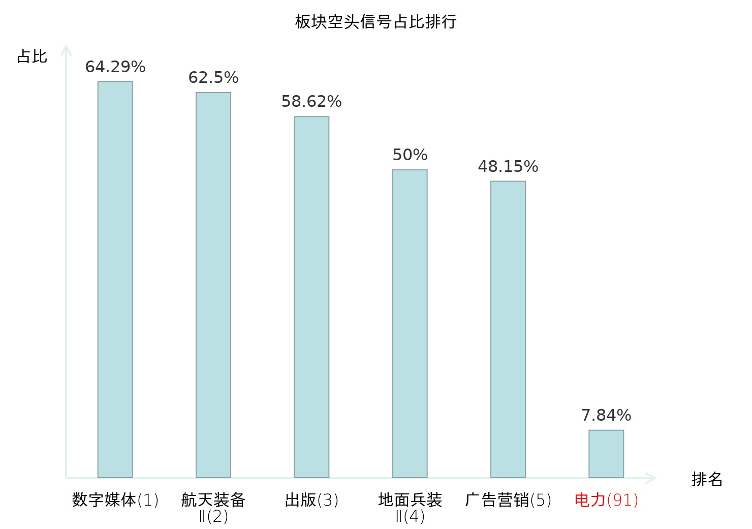 全市场所有行业板块中主力空头信号占比排名中,数字媒体板块位居第一。出版板块名次提升最快,较昨日上升116位。