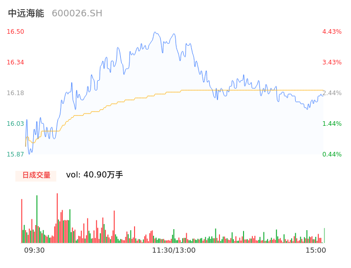 04月12日,中远海能收报16.16,股价涨幅2.28%,成交金额6.63亿元,换手率1.18%。