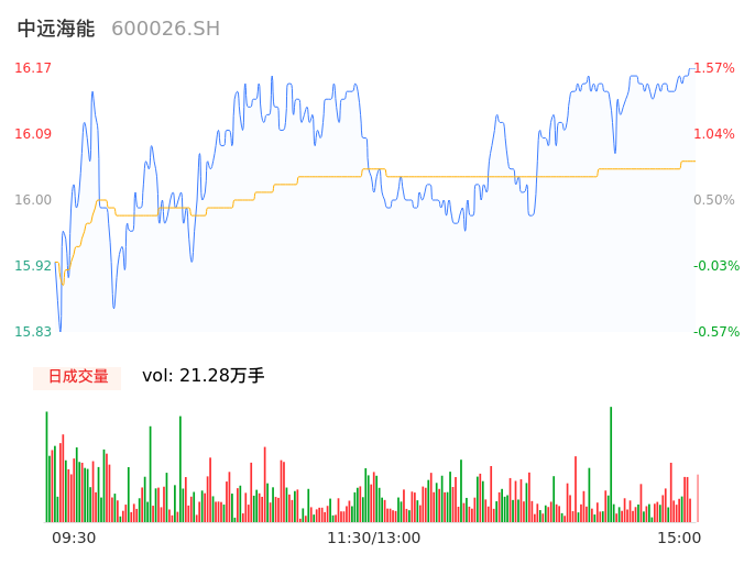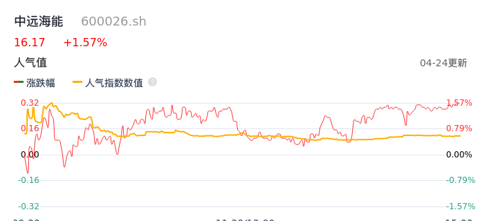 04月24日,中远海能收报16.17,股价涨幅1.57%,成交金额3.42亿元,换手率0.61%。