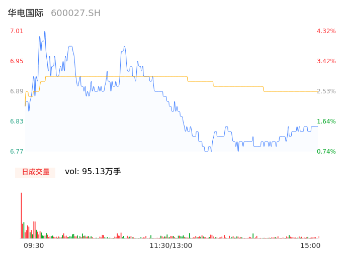 04月24日,华电国际收报6.82,股价涨幅1.49%,成交金额6.55亿元,换手率1.12%。