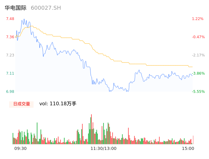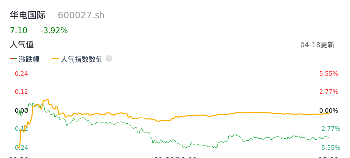 04月18日,华电国际收报7.10,股价涨幅-3.92%,成交金额7.91亿元,换手率1.30%。