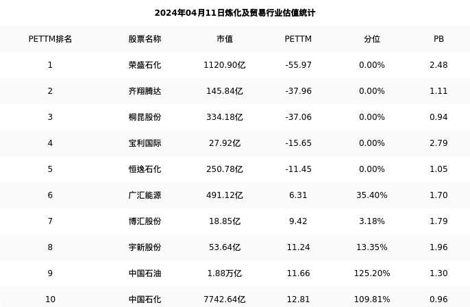 从估值角度看:中国石化最新市盈率PETTM为12.81,在行业内排名5/29,处于109.81分位。