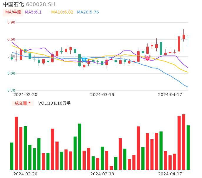 04月17日,中国石化收报6.64,股价涨幅-0.60%,成交金额12.58亿元,换手率0.20%。