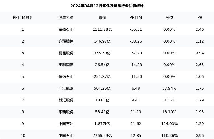 从估值角度看:中国石化最新市盈率PETTM为12.85,在行业内排名5/29,处于110.36分位。