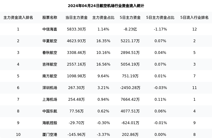 从主力资金流向来看,航空机场行业今日主力资金流入28.39亿元,在所有申万二级行业中排名:101/131。