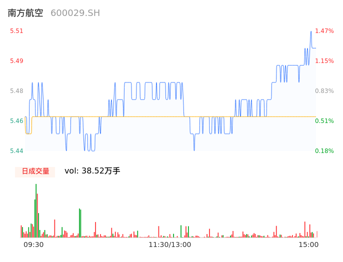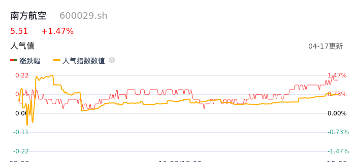 04月17日,南方航空收报5.51,股价涨幅1.47%,成交金额2.10亿元,换手率0.30%。