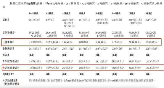 招股书显示,晶泰科技自成立以来共获得Pre-A轮融资、A-1轮融资、A-2轮融资、B轮融资、B+轮融资、B++轮融资、C轮融资及D轮融资等共8轮融资,投资者包括腾讯、红杉中国、软银愿景基金、谷歌等知名机构。