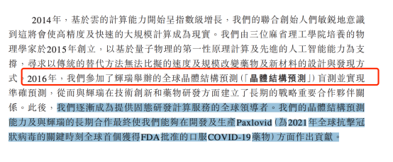 招股书披露,晶泰科技由三位麻省理工学院培养的物理学家温书豪、马健、赖力鹏于2015年创立,以基于量子物理的第一性原理计算及先进的人工智能算力为支撑,寻求以传统的替代方法无法比拟的速度及规模改变药物及新材料的设计与发现方式。