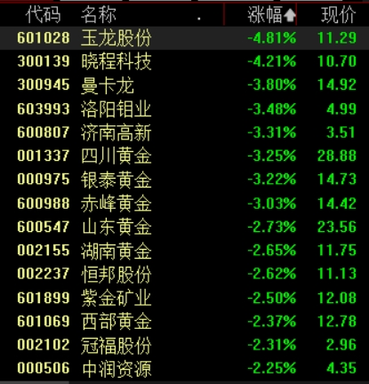 12月5日,黄金板块回调,个股多数下跌。截至发稿,玉龙股份、晓程科技跌超4%,曼卡龙、洛阳钼业、济南高新等多股跌超3%。