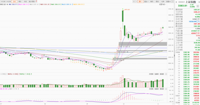 市场节奏方面,今日的美国大选进程牵动着A股的神经。可以看到,A股上午还是一个震荡上行的态势,金融板块继续高举高开,火热行情延续。