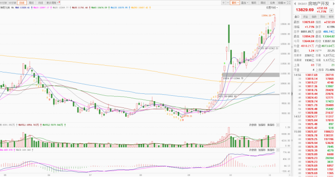 主题板块上,房地产开发持续拉升,荣盛发展、华建集团、华夏幸福涨停,特发服务、绿地控股、华远地产等跟涨。